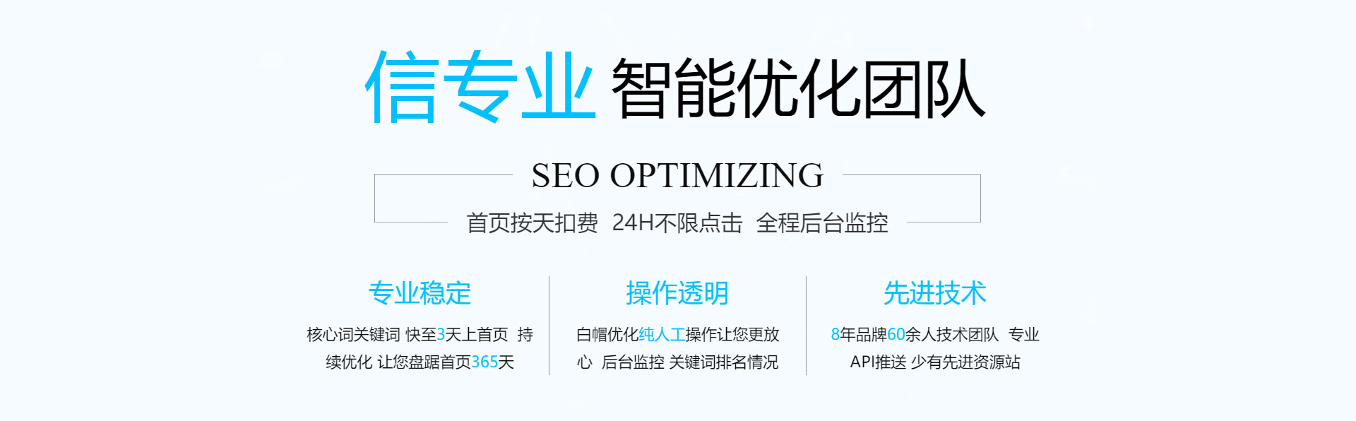 關(guān)鍵詞優(yōu)化,無(wú)效果退款!專(zhuān)業(yè)技術(shù)管控賬戶,減少無(wú)效點(diǎn)擊,全方位網(wǎng)絡(luò)推廣,讓您的信息遍布互聯(lián)網(wǎng)。